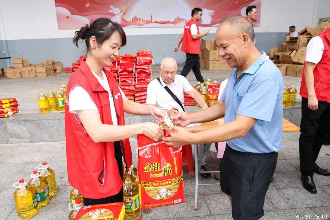 活动现场,爱心企业工作人员将精心准备的油、米等生活用品送到长者手中,关心询问长者们的饮食起居、健康状况等生活情况,倾听他们的需求与心声,考虑到部分长者行动不便,爱心企业与社区工作人员组成入户慰问小组,为他们送上慰问品和节日问候。